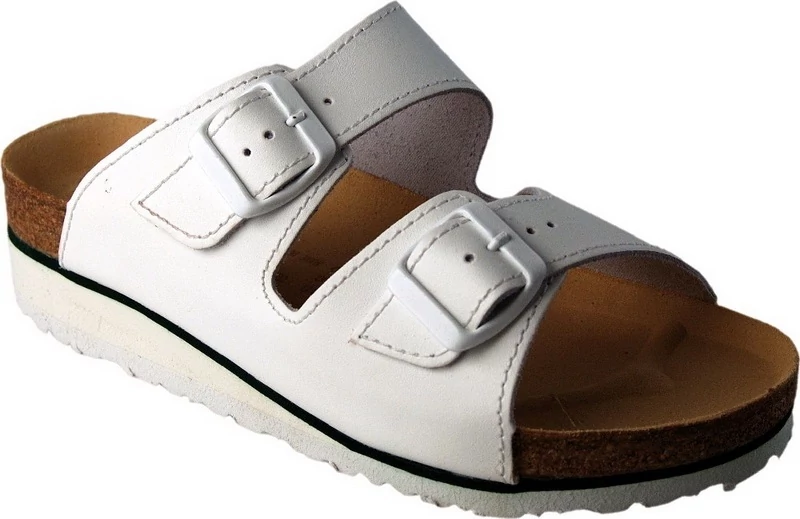 Papucs Flora bőr felsőrész parafa/gumi talp csattal állítható szélesség white 40