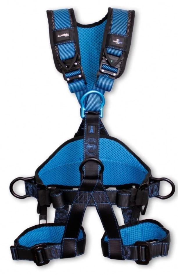 Testheveder 1 hátsó rögzítési ponttal + 1 hátsó rögzítési ponttal + 1 ventrális „D” gyűrűvel az üléshez + 2 oldalsó „D” rögzítési gyűrűvel a pozícionáláshoz. Állítható hevederek a vállon, a combon és a mellkason. A lábak, az öv és a váll csatjai automatikusak és könnyen illeszkednek. 2 gyűrű + 1 szerszámtartó tartó. Különösen párnázott, poliészter szövött hálóval rendelkezik, amely jobb energiaelnyelést és maximális kényelmet nyújt a felhasználó számára. Kovácsolt alumínium gyűrűk. Nylon táskával szállítva.