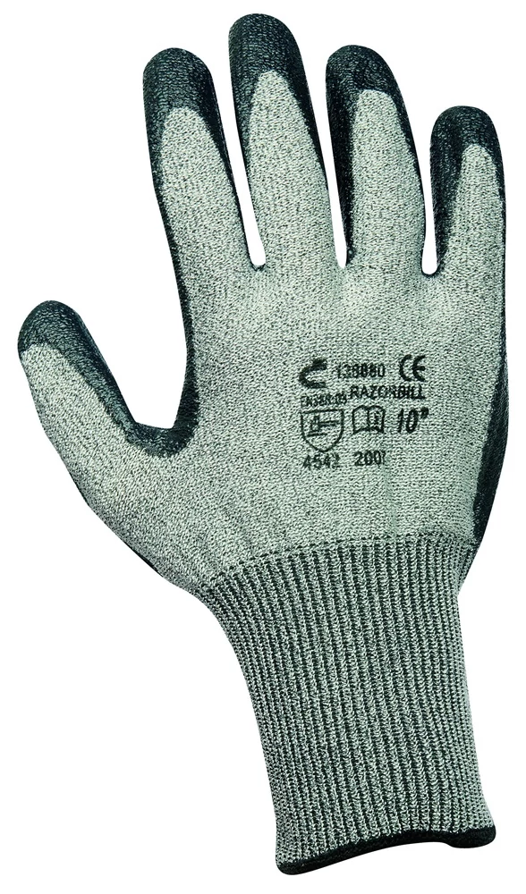 5. osztályú vágásállóságú, módosított üvegszálból, Spandexből és nylonból kötött, varratmentes kesztyű HCT nitril bevonatú tenyérrel és ujjakkal.